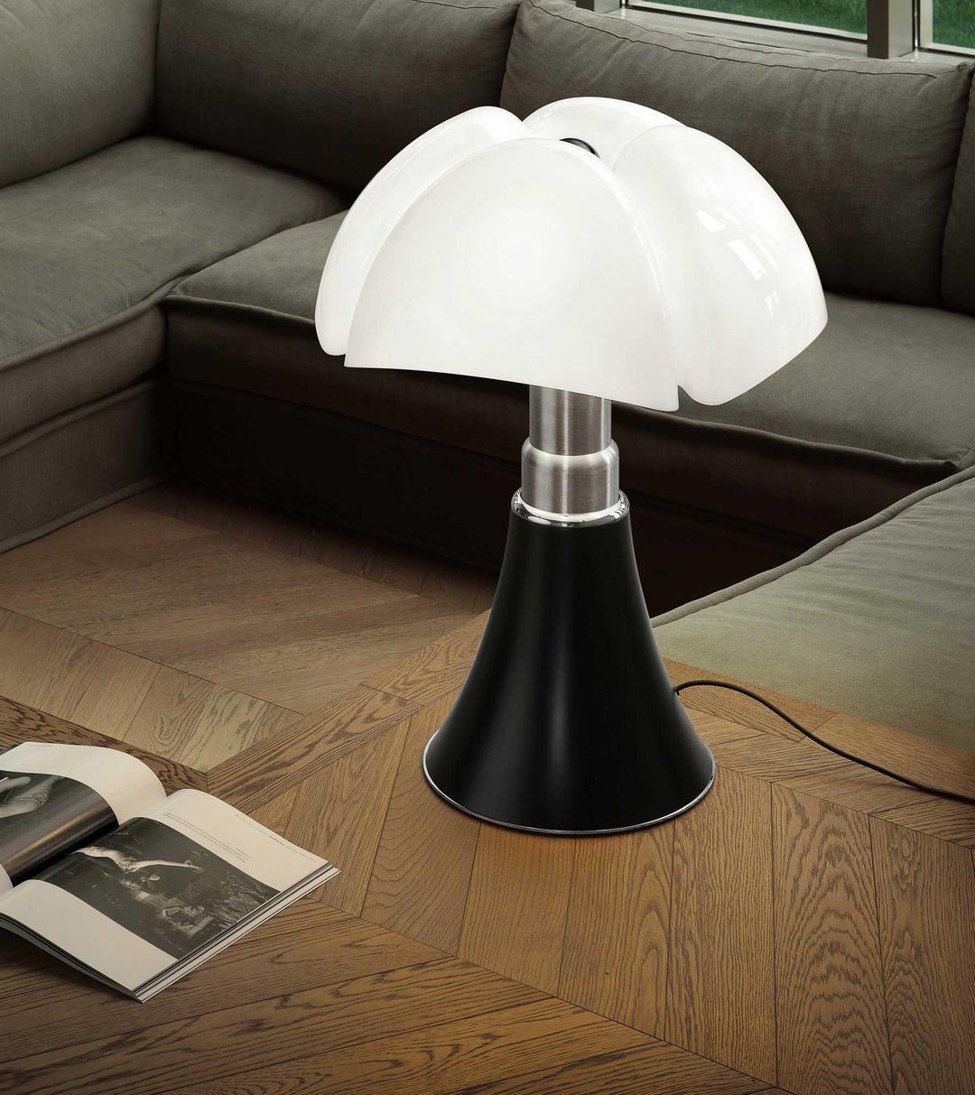 Editée par la maison Martinelli Luce, elle traverse les générations depuis plus de 50 ans. Cette lampe possède une technologie très novatrice pour son époque, avec des formes très complexes pour la production : c’est le nec plus ultra du design Italien.