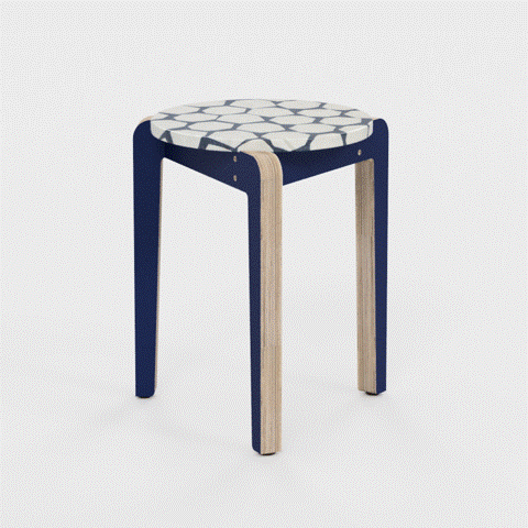 Son petit + : l’invention d’un procédé de stratification qui lui permet de personnaliser les meubles à l’infini à partir de vieux draps.