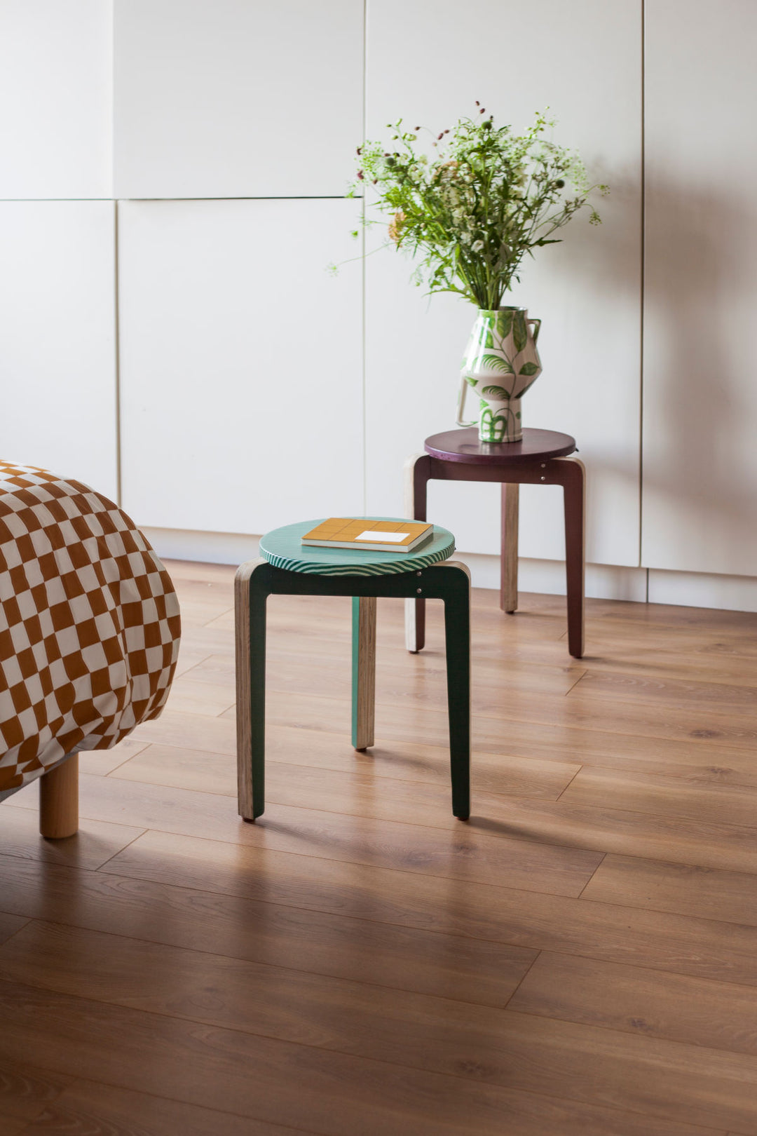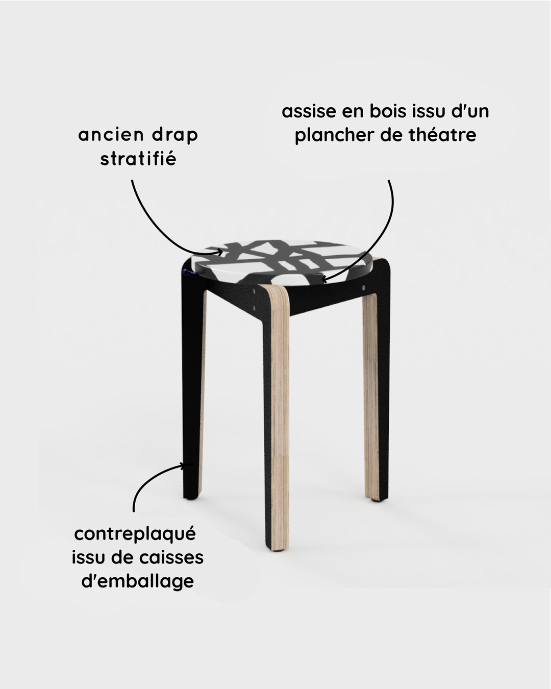 Nous collectons chaque semaine plus de 200 kg d'anciens draps, que nos trions selon leur potentiel esthétique et réutilisons en décor pour nos meubles.