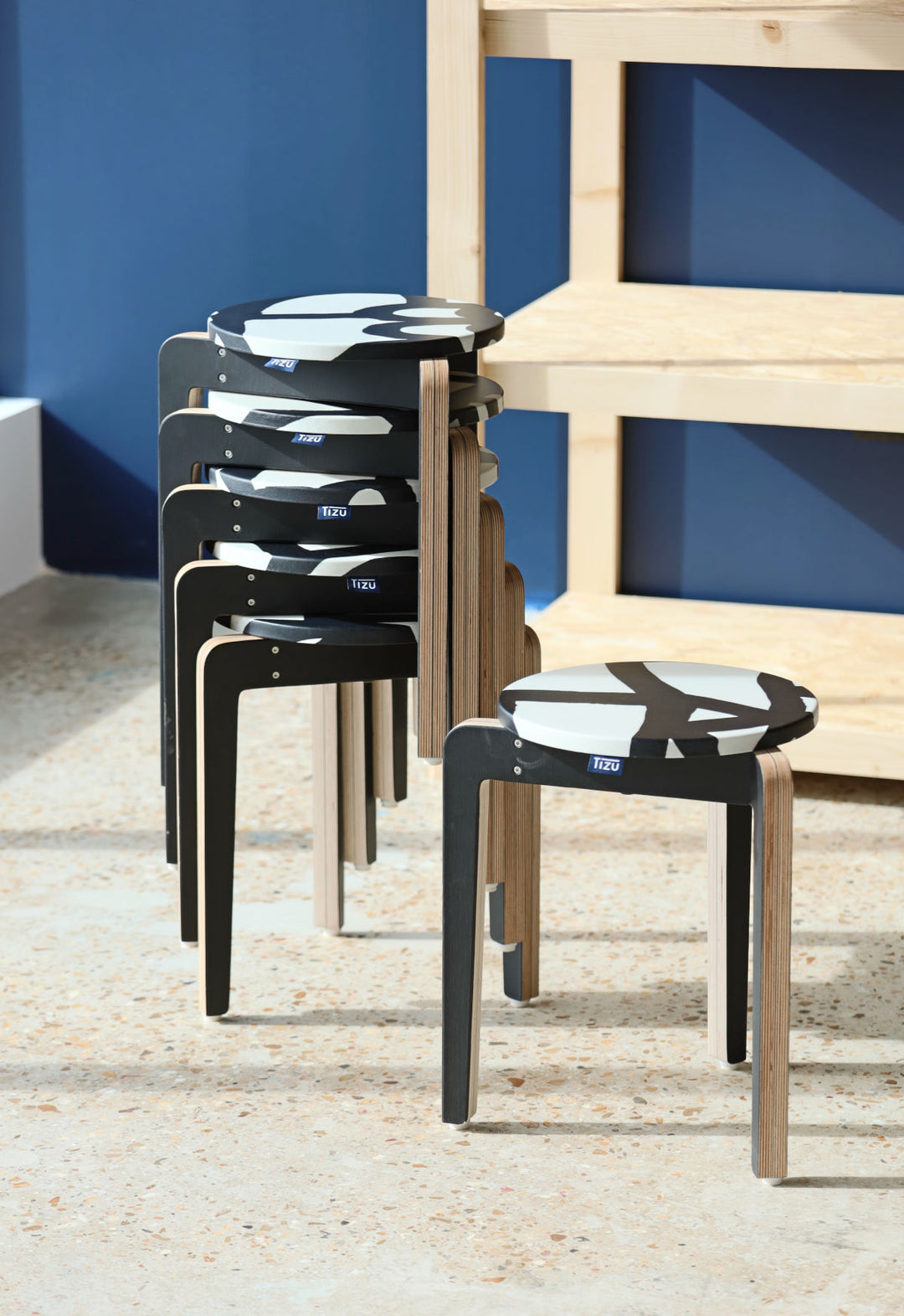 Le tissus est ensuite solidifié puis verni pour en faire un revêtement de mobilier résistant.