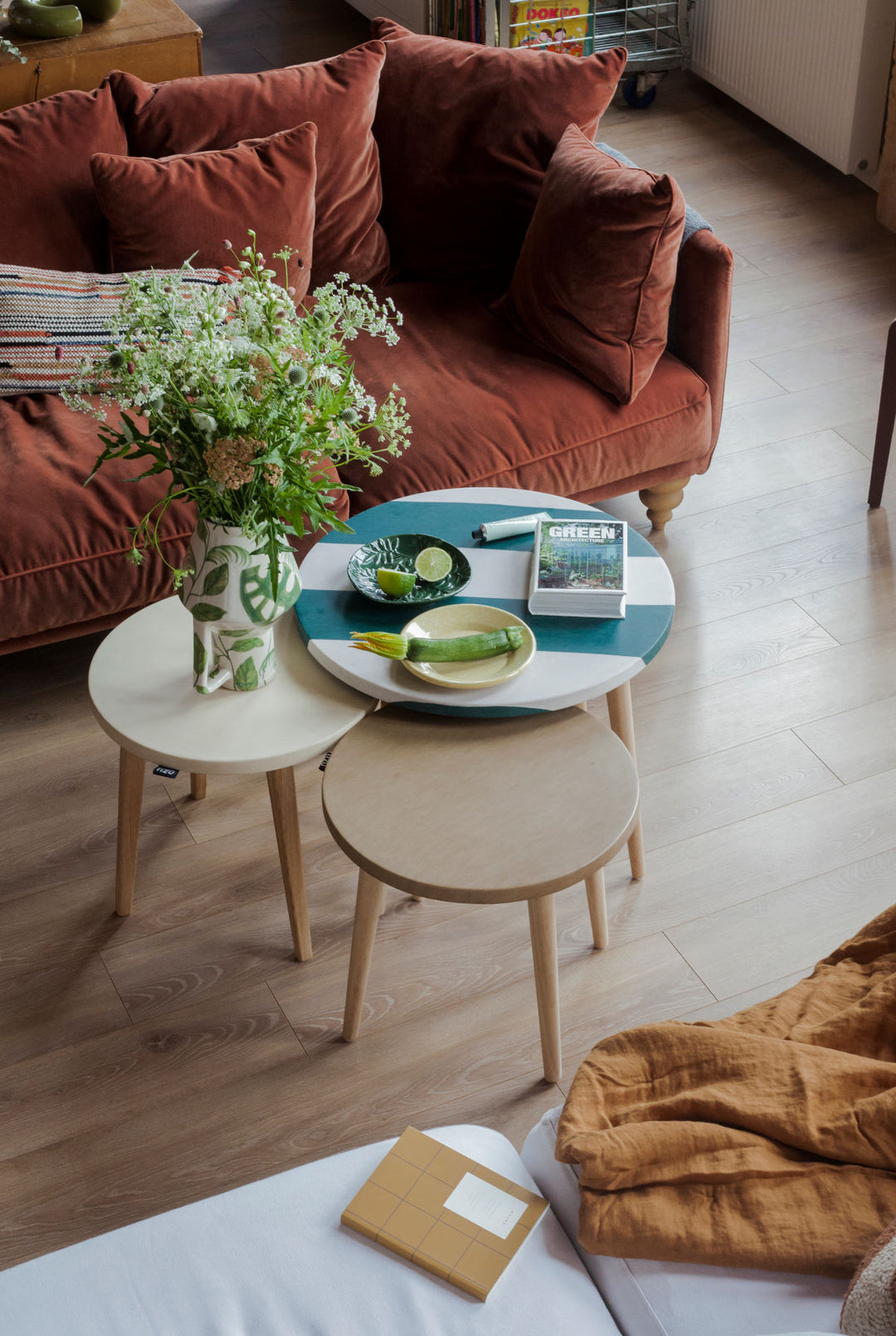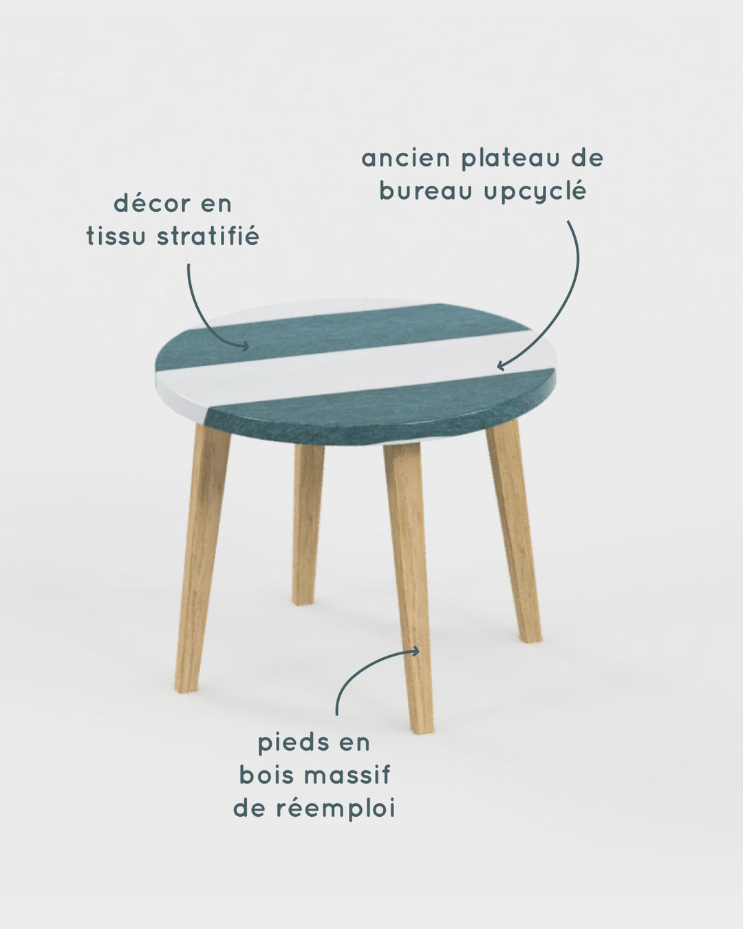 Nous collectons du linge de maison en fin de vie pour réaliser le décor de nos tables basses.