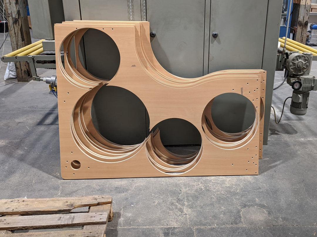Nous découpons nos plateaux de table basse dans d'anciens bureaux, récupérés dans des immeubles en déconstruction.