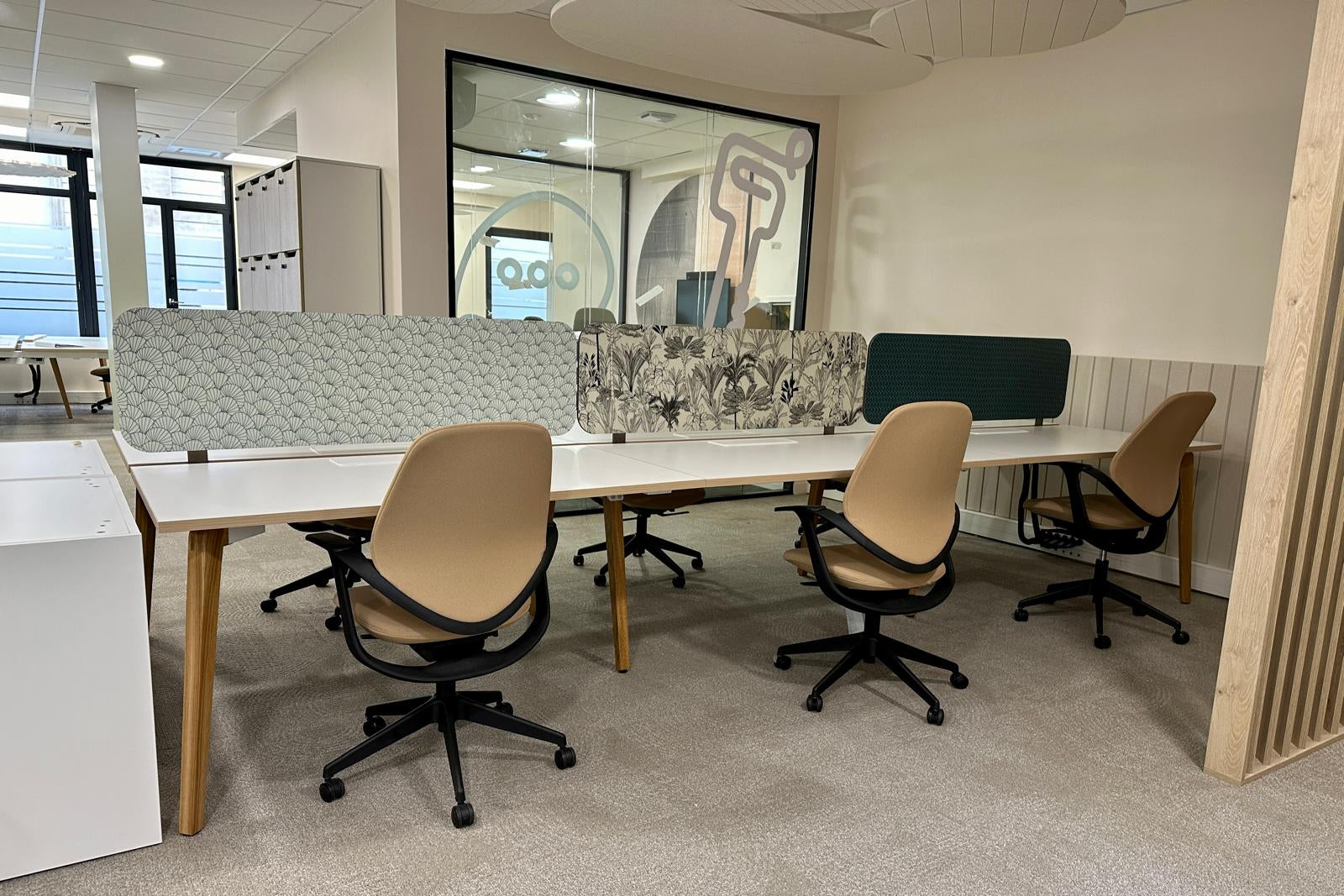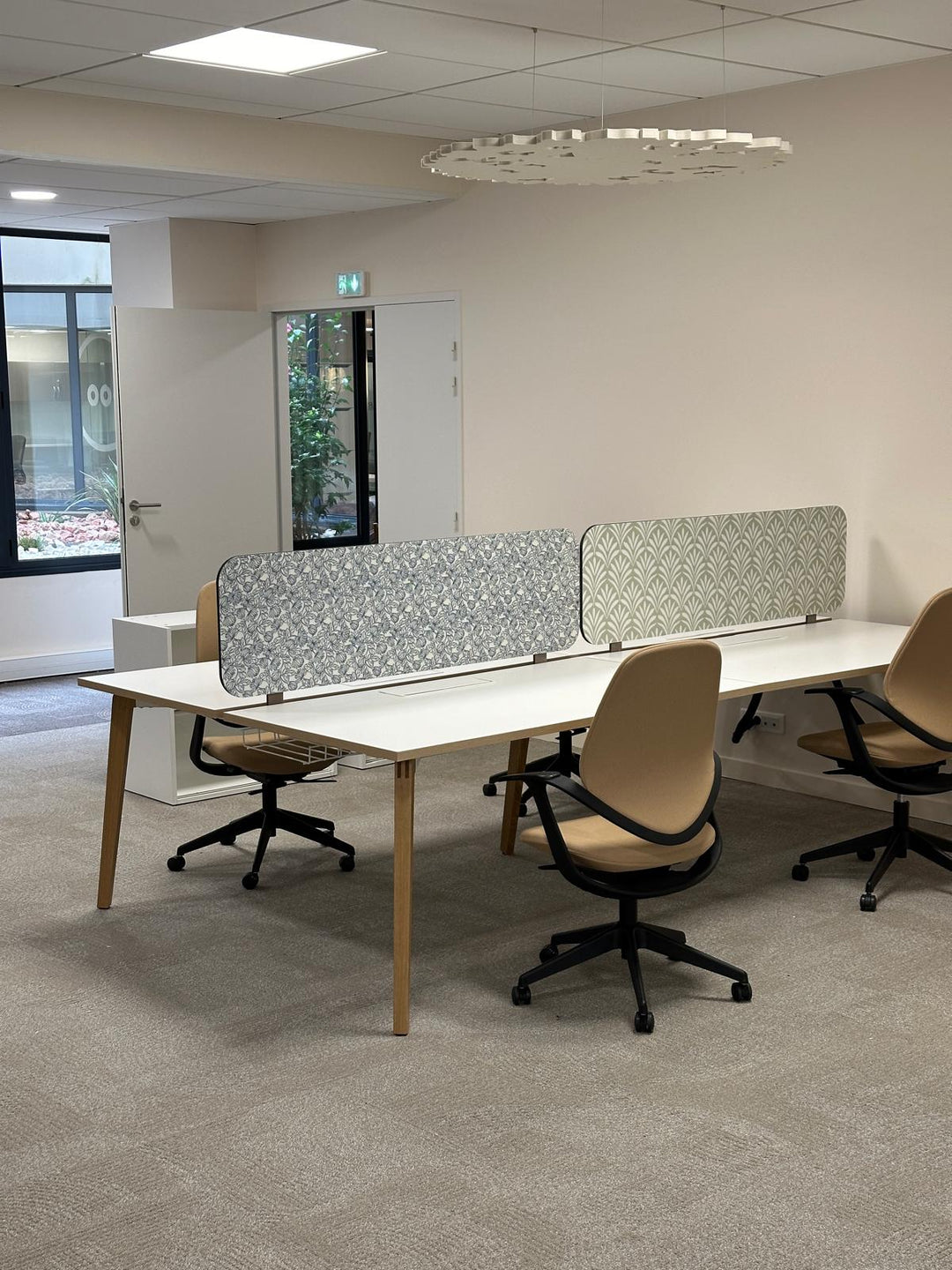 Pour ce projet de rénovation du siège social de Batigère, bailleur social implanté sur l'ensemble du territoire, nous avons fourni un grand panel de table ainsi que nos séparateurs de bureau.