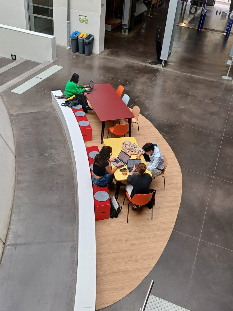 Pour ce projet de rénovation de l'agora de l'Université de Lyon, nous avons fourni l'ensemble des tables. Les clients ont retenu nos tables Brotteaux et tables Guichard.