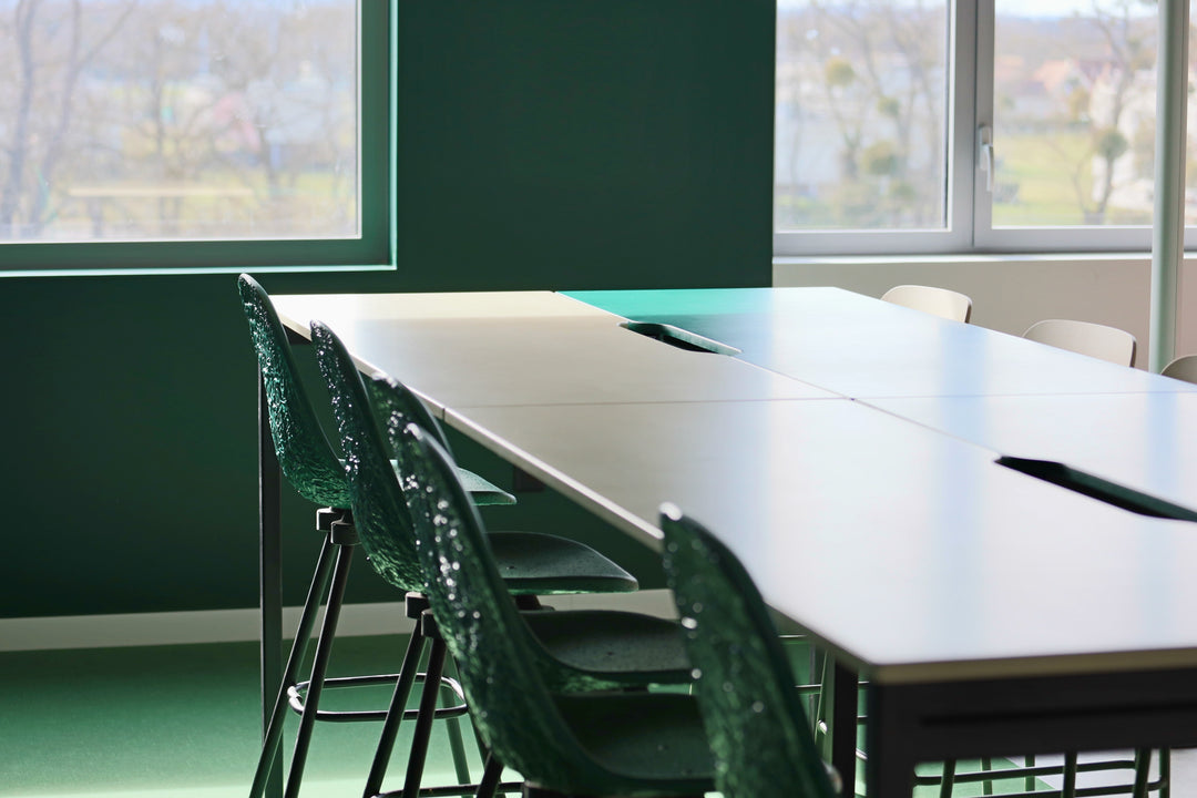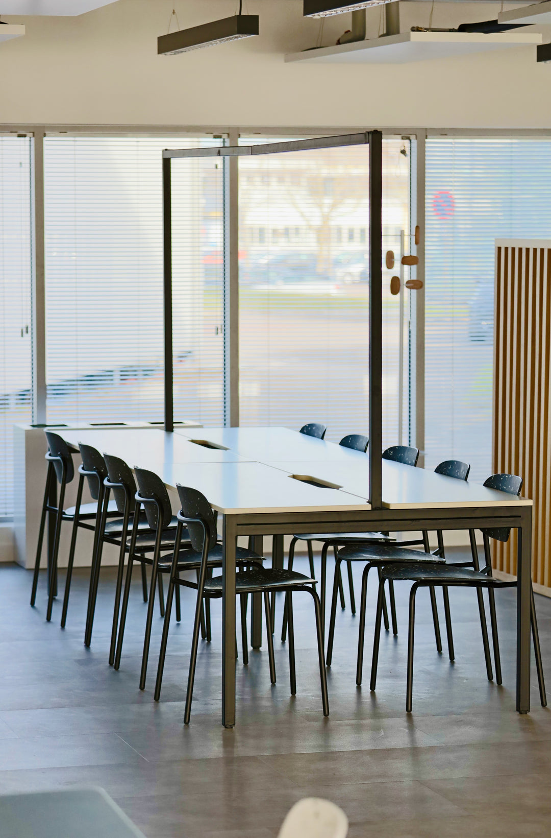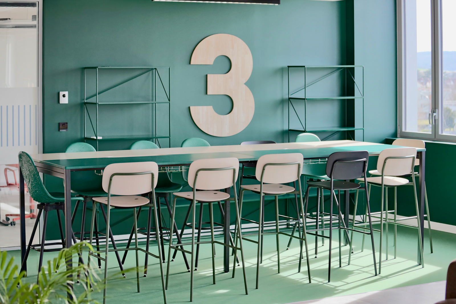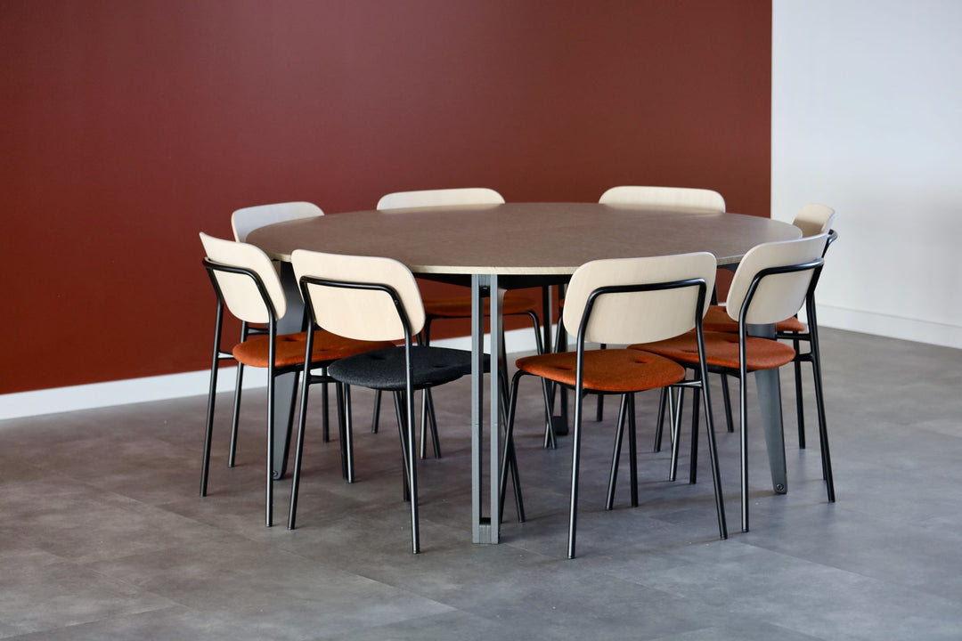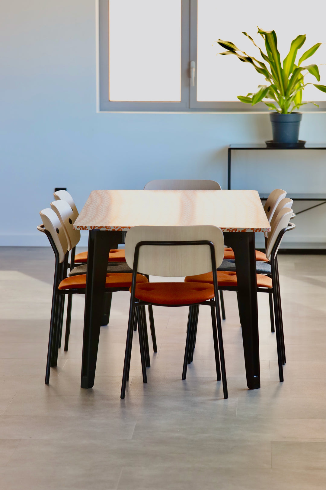 Pour ce projet d'aménagement du bâtiment de formation ReFactory de l'usine Renault de Flins, nous avons fourni l'ensemble des tables. Quasiment l'entièreté du catalogue a été sélectionné :